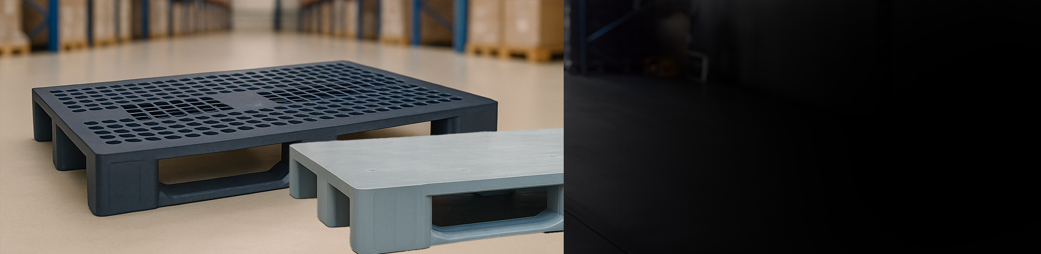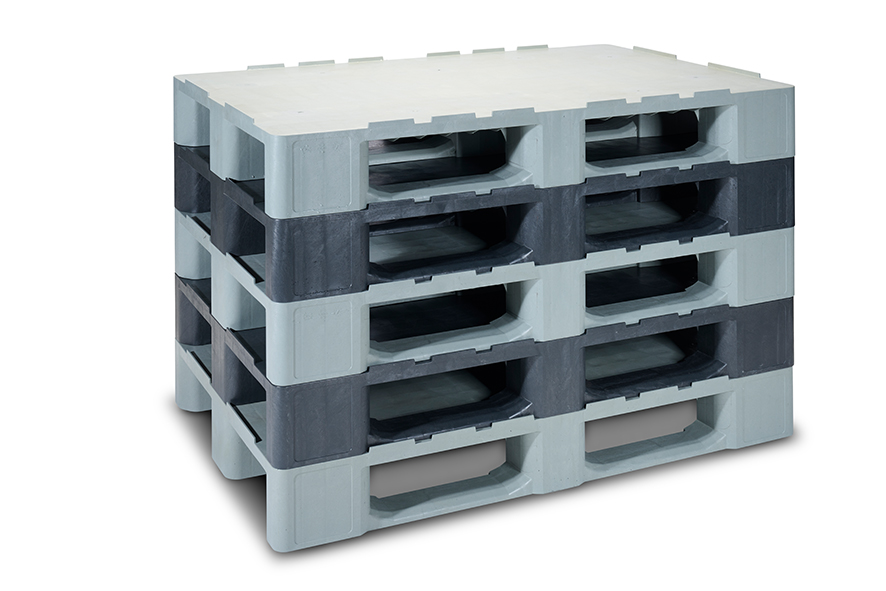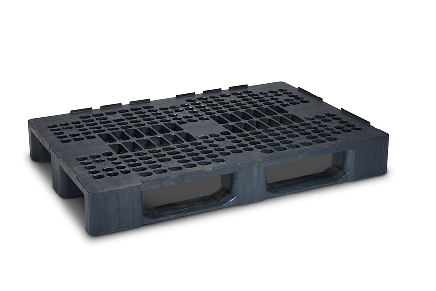 Unsere runderneuerte Universalpalette aus 100 % recyceltem Kunststoff gibt es nun in weiteren Varianten mit durchbrochener Deckfläche.